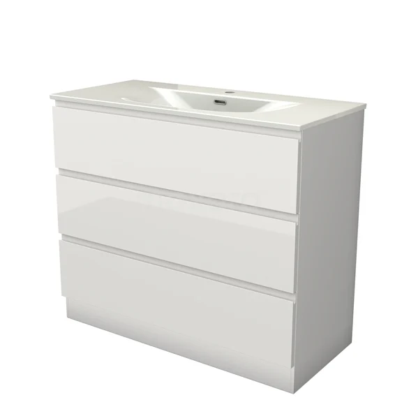 Modulo Bathroom furniture with sink | 100 cm High-gloss white Handle-less front Ceramic 3 standing drawers