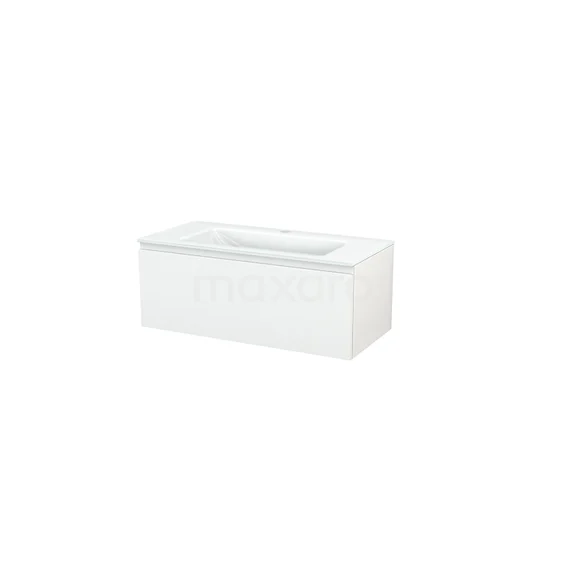 Modulo+ Bathroom furniture with sink | 100 cm High-gloss white Handle-less front Glass 1 drawer
