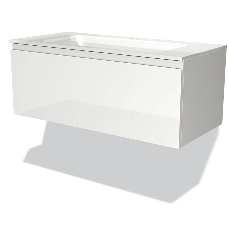 Modulo Bathroom furniture with sink | 100 cm High-gloss white Handle-less front Glass 1 drawer