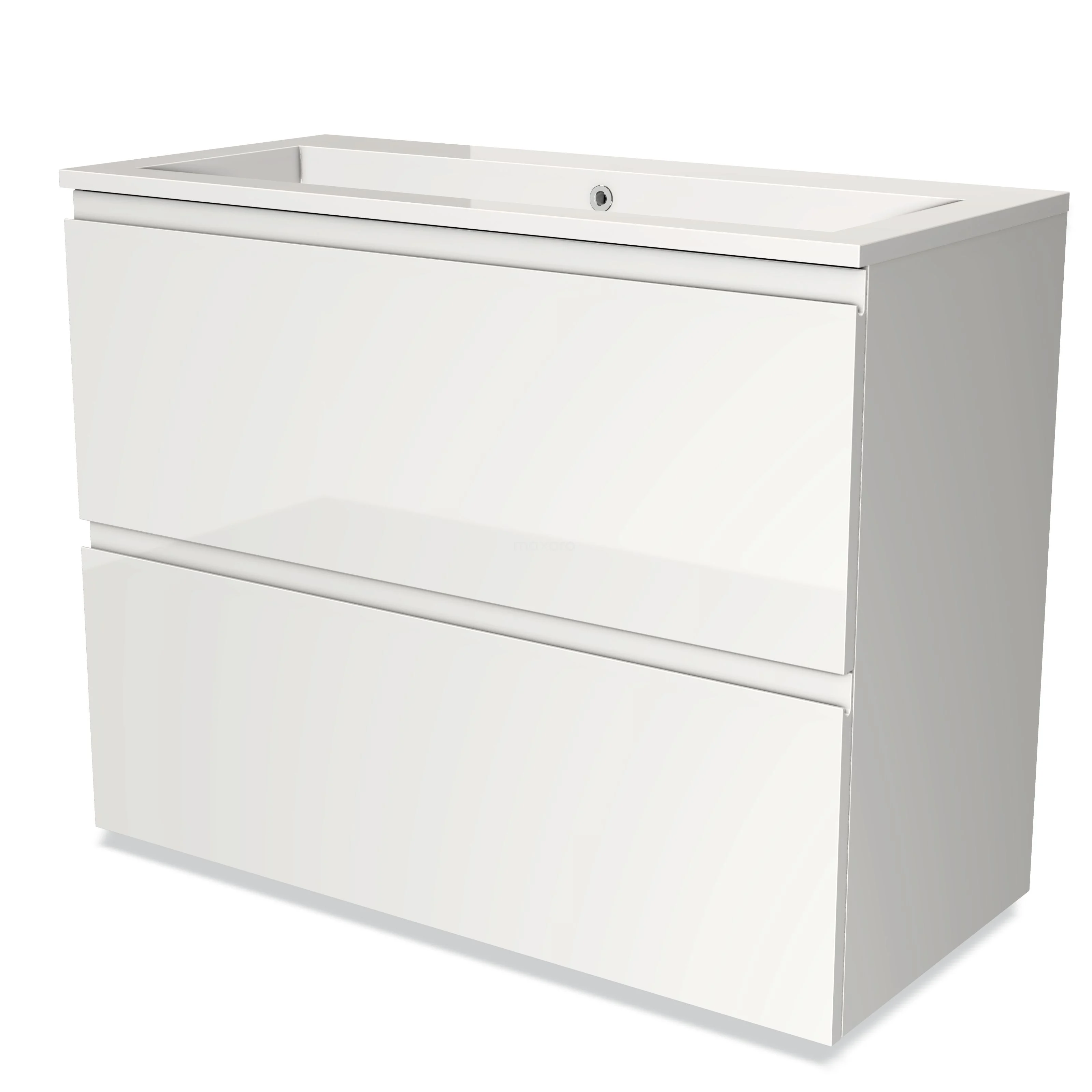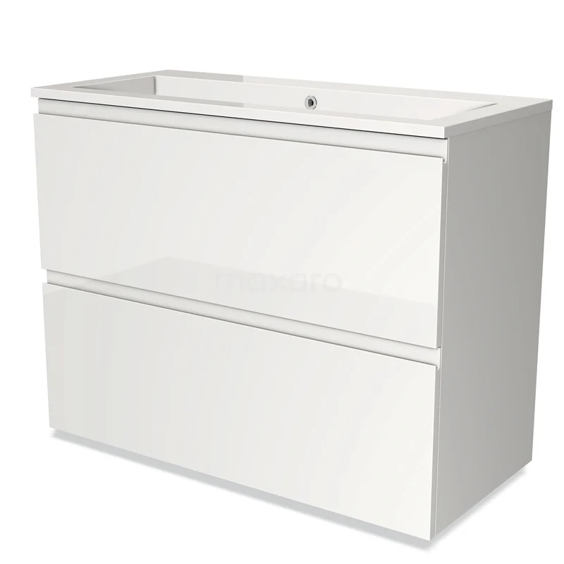 Modulo Bathroom furniture with sink | 100 cm High-gloss white Handle-less front Mineral marble 2 stacked drawers under each other