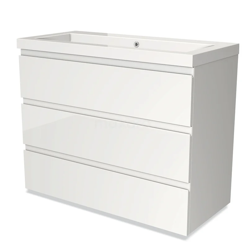 Modulo Bathroom furniture with sink | 100 cm High-gloss white Handle-less front Mineral marble 3 drawers