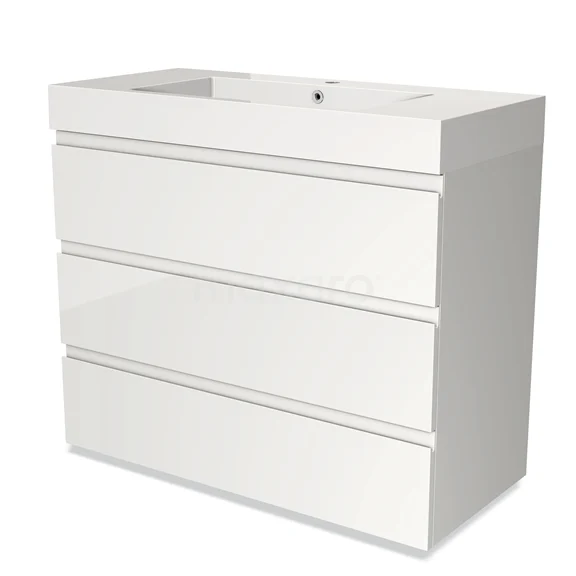 Modulo Bathroom furniture with sink | 100 cm High-gloss white Handle-less front Mineral marble 3 drawers
