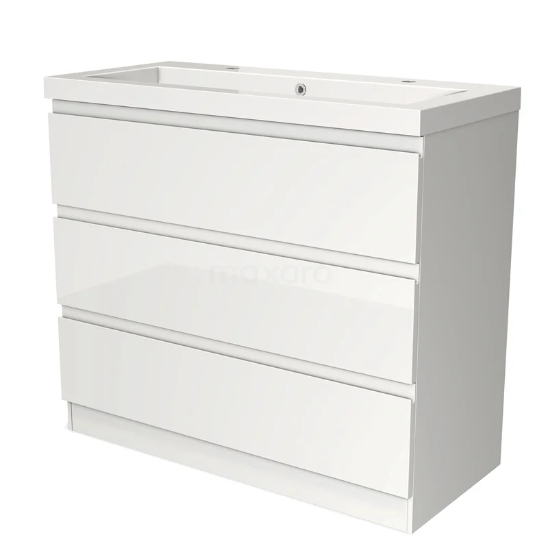 Modulo Bathroom furniture with sink | 100 cm High-gloss white Handle-less front Mineral marble 3 standing drawers