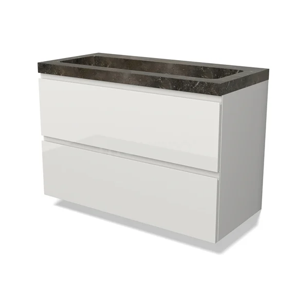 Modulo Bathroom furniture with sink | 100 cm High-gloss white Handle-less front Natural stone 2 Stacked drawers