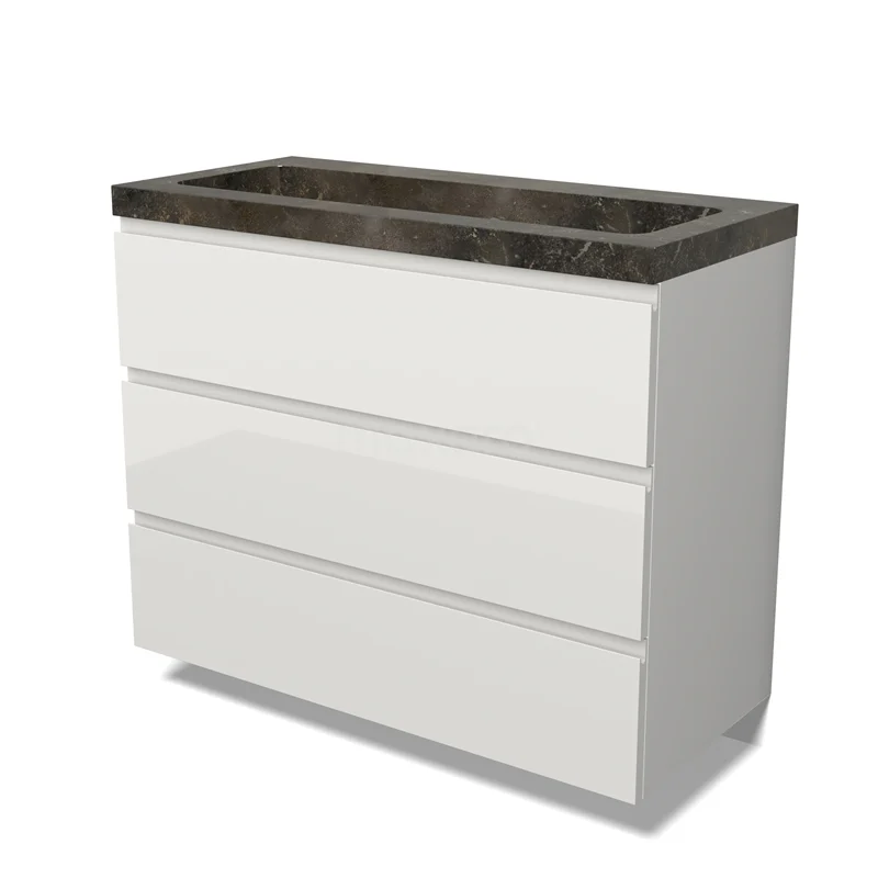 Modulo Bathroom furniture with sink | 100 cm High-gloss white Handle-less front Natural stone 3 drawers