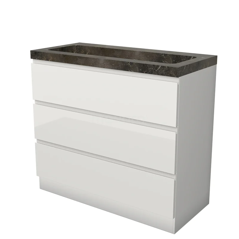 Modulo Bathroom furniture with sink | 100 cm High-gloss white Handle-less front Natural stone 3 standing drawers