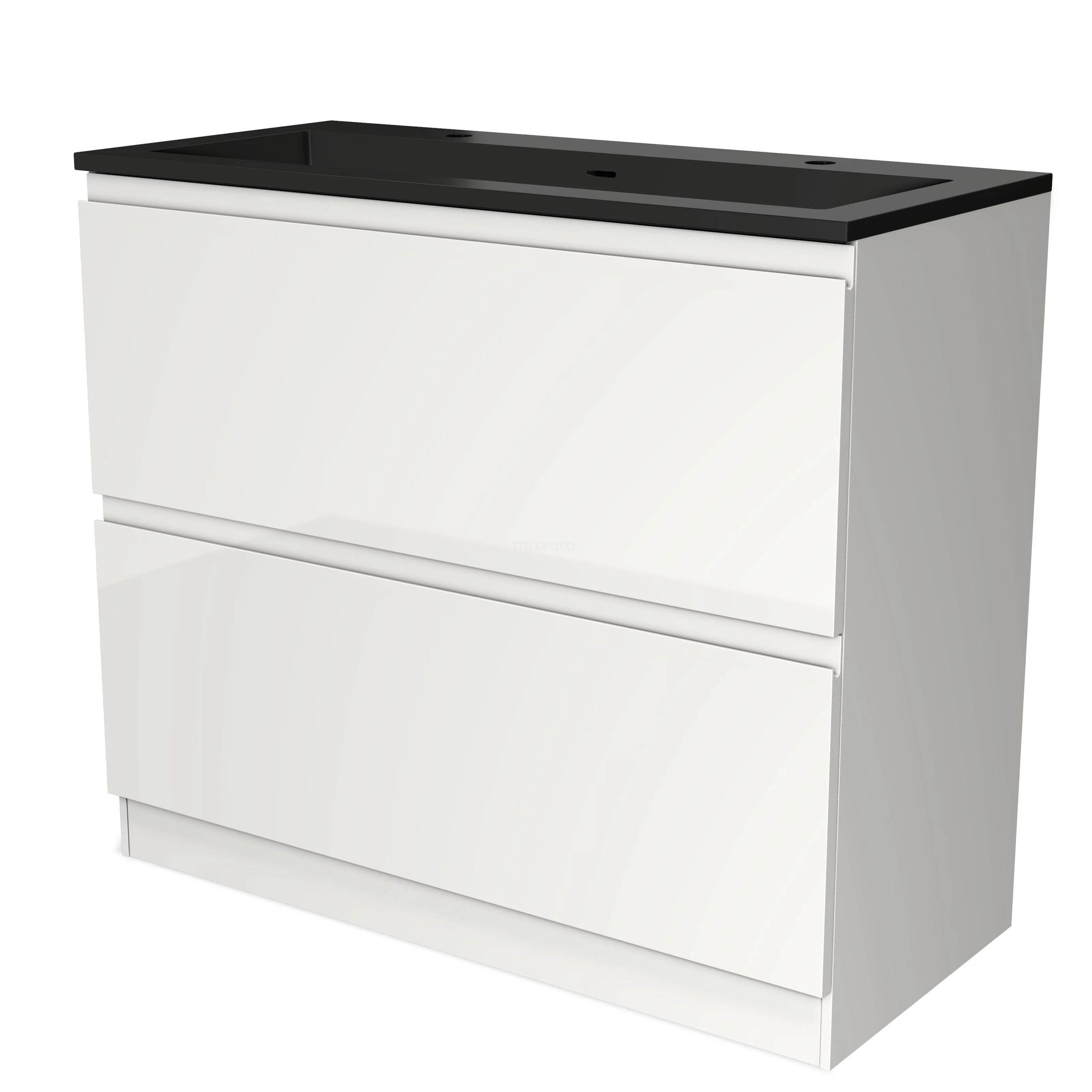 Modulo Bathroom furniture with sink | 100 cm High-gloss white Handle-less front Quartz 2 high drawers standing drawers under each other