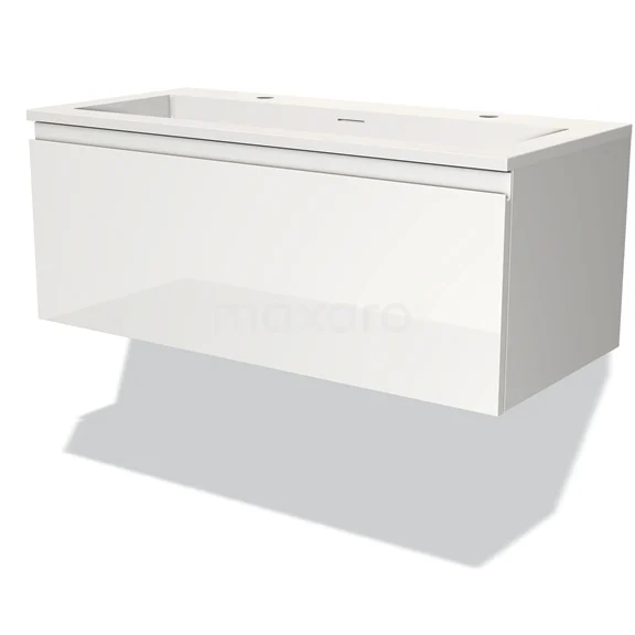 Modulo Bathroom furniture with sink | 100 cm High-gloss white Handle-less front Solid surface 1 drawer