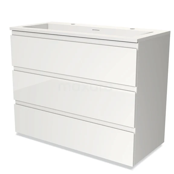 Modulo Bathroom furniture with sink | 100 cm High-gloss white Handle-less front Solid surface 3 drawers