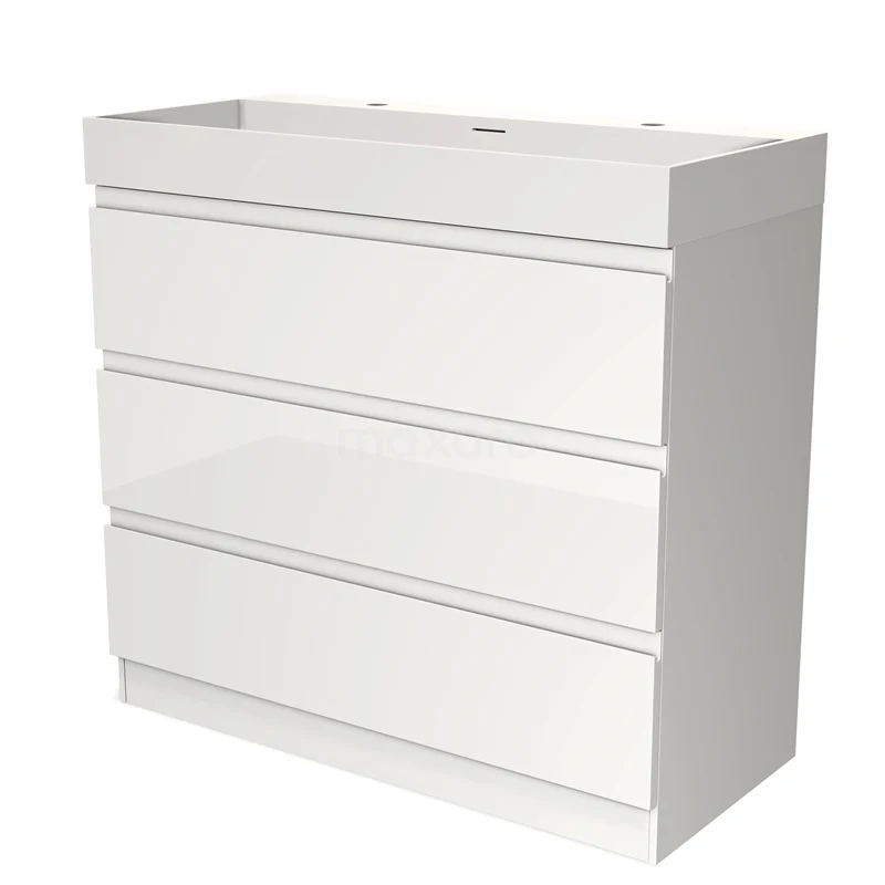 Modulo Bathroom furniture with sink | 100 cm High-gloss white Handle-less front Solid surface 3 standing drawers