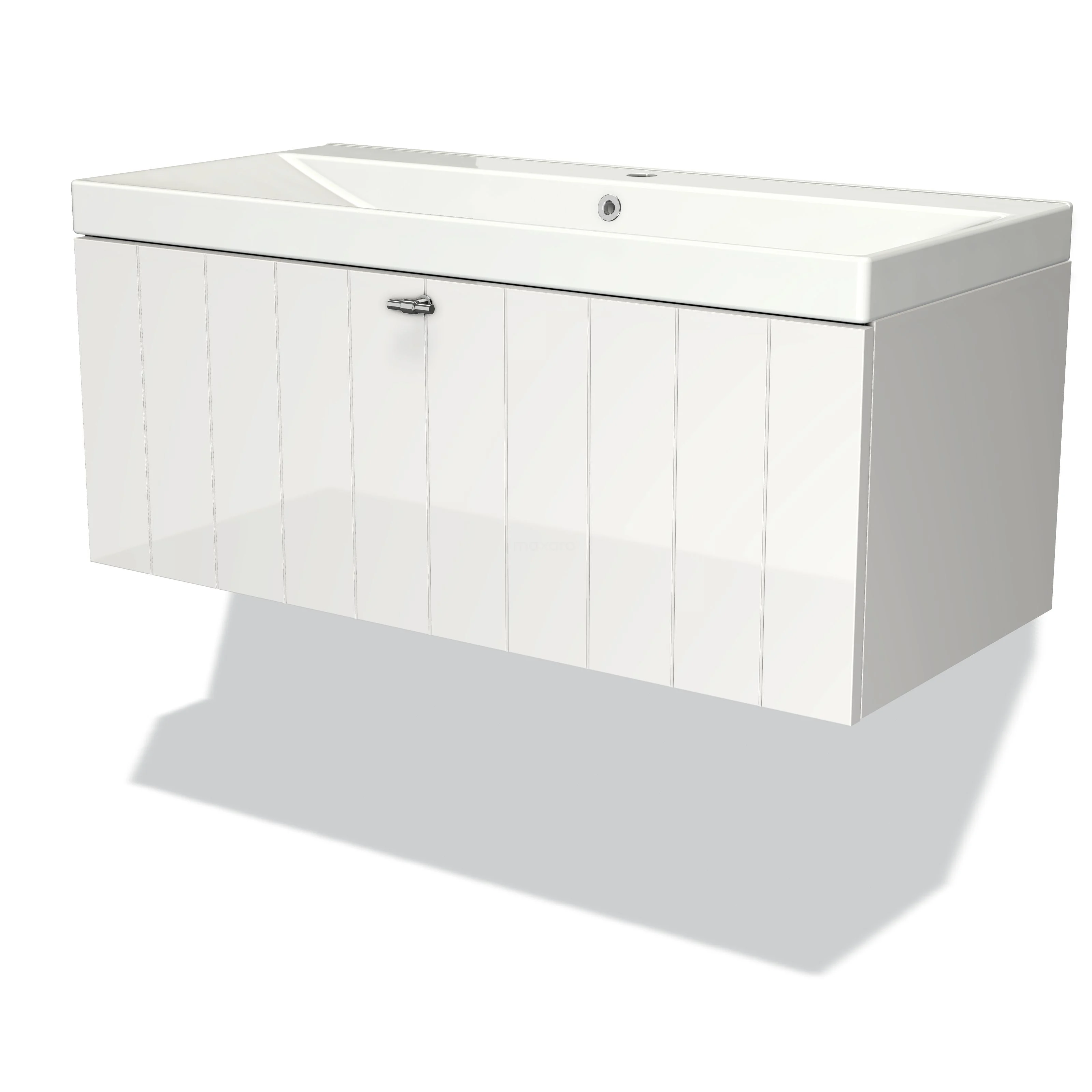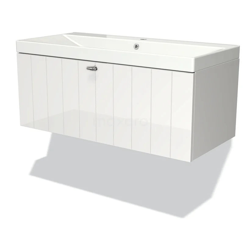 Modulo Bathroom furniture with sink | 100 cm High-gloss white Slat front Ceramic 1 drawer