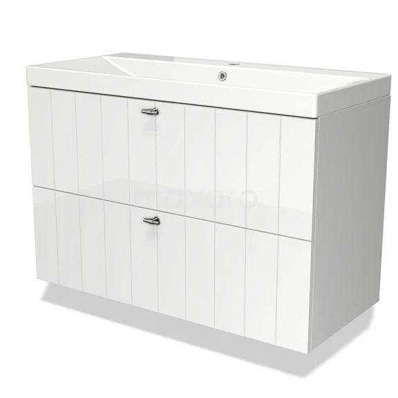 Modulo Bathroom furniture with sink | 100 cm High-gloss white Slat front Ceramic 2 Stacked drawers