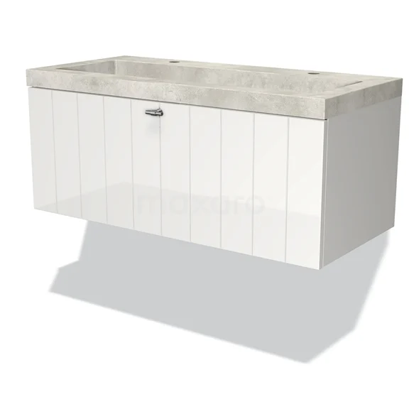 Modulo Bathroom furniture with sink | 100 cm High-gloss white Slat front Concrete 1 drawer