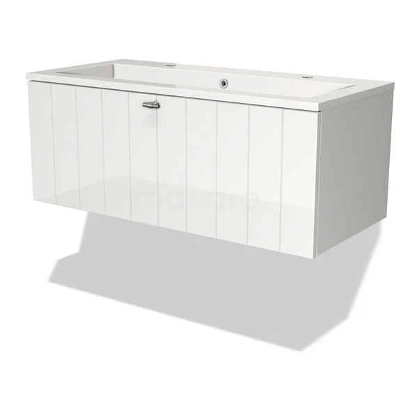 Modulo Bathroom furniture with sink | 100 cm High-gloss white Slat front Mineral marble 1 drawer