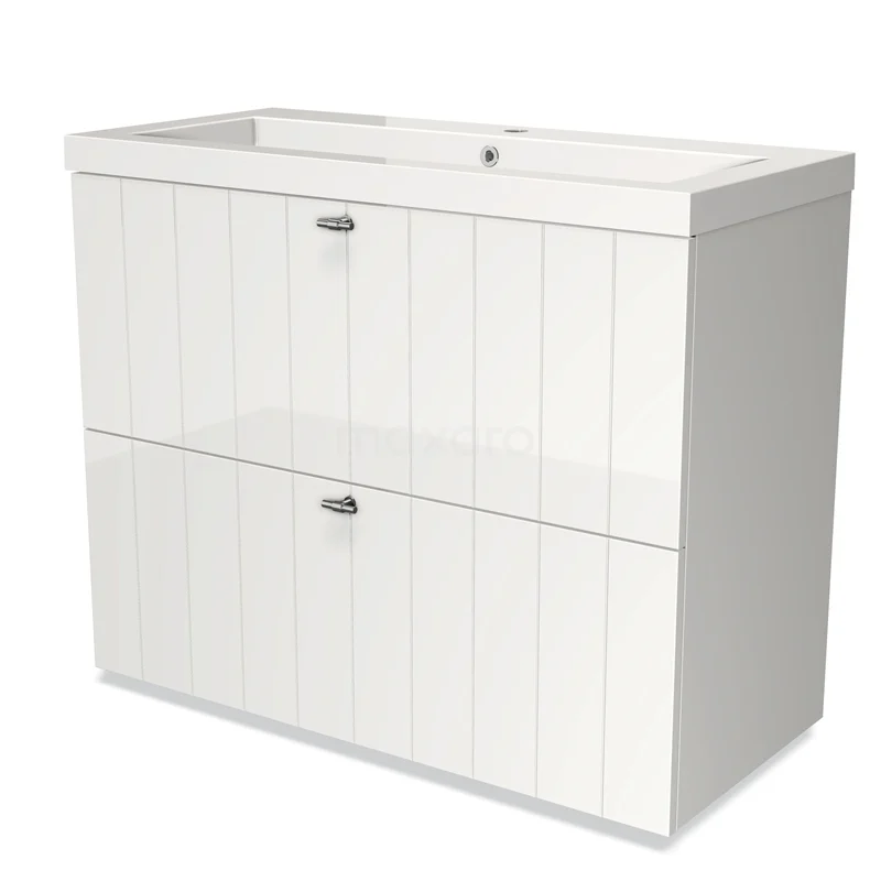 Modulo Bathroom furniture with sink | 100 cm High-gloss white Slat front Mineral marble 2 stacked drawers under each other