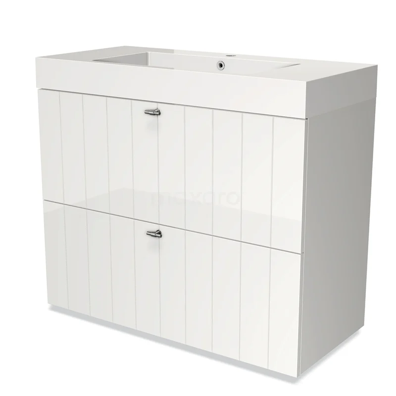 Modulo Bathroom furniture with sink | 100 cm High-gloss white Slat front Mineral marble 2 stacked drawers under each other