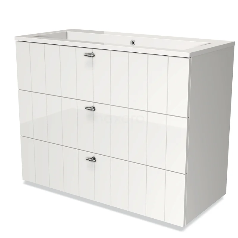 Modulo Bathroom furniture with sink | 100 cm High-gloss white Slat front Mineral marble 3 drawers