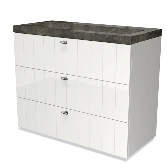 Modulo Bathroom furniture with sink | 100 cm High-gloss white Slat front Natural stone 3 drawers