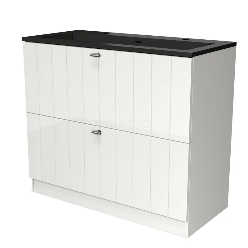 Stylish design The stylish design makes this bathroom unit the eye-catcher of your bathroom. The base cabinet features a slatted front and has a high-gloss white finish. This colour has a modern appeal and gives the unit a fresh look and feel. In addition, the slatted front adds a rural touch. You need to add the handles yourself. These are available in different colours and shapes.
