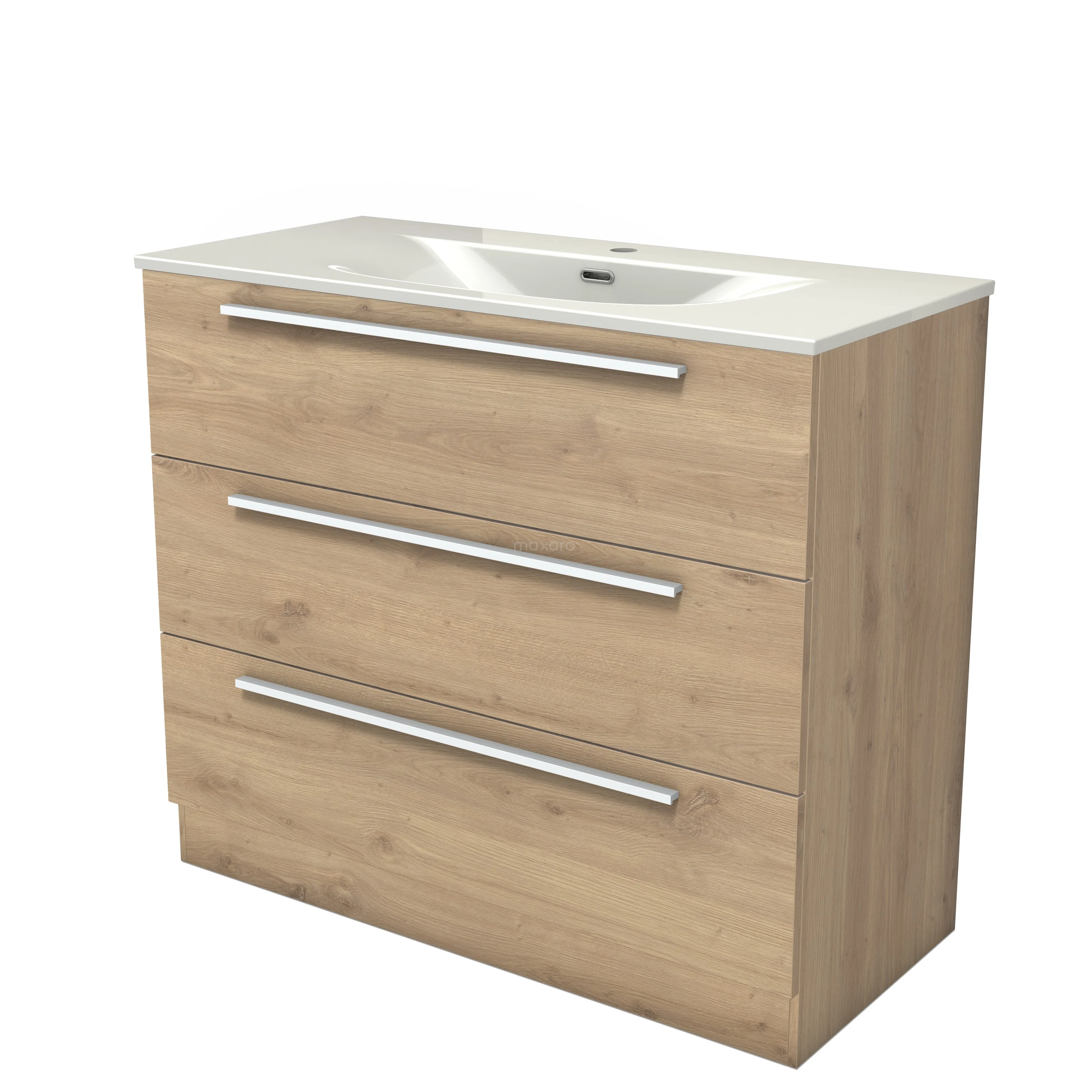 Modulo Bathroom furniture with sink | 100 cm Light brown oak Flat front Ceramic 3 standing drawers