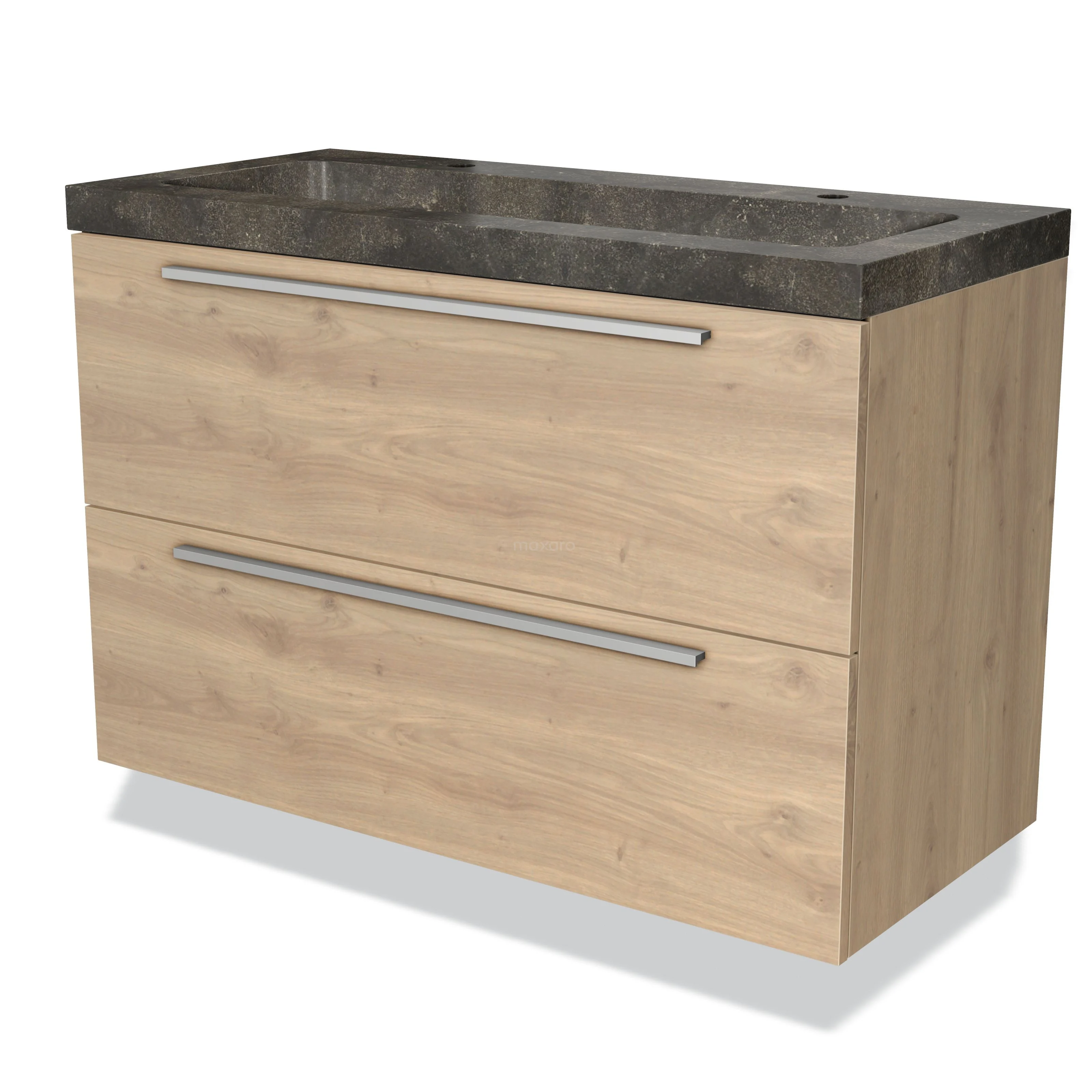Modulo Bathroom furniture with sink | 100 cm Light brown oak Flat front Natural stone 2 Stacked drawers