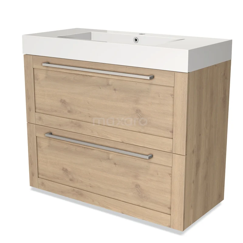Modulo Bathroom furniture with sink | 100 cm Light brown oak Frame front Mineral marble 2 stacked drawers under each other