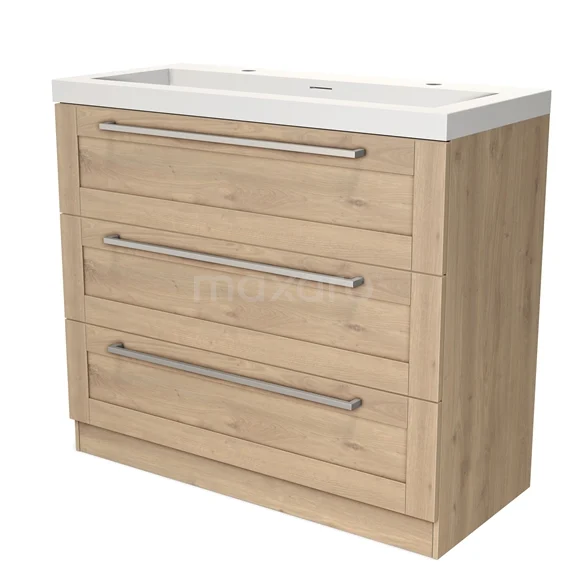 Modulo Bathroom furniture with sink | 100 cm Light brown oak Frame front Solid surface 3 standing drawers