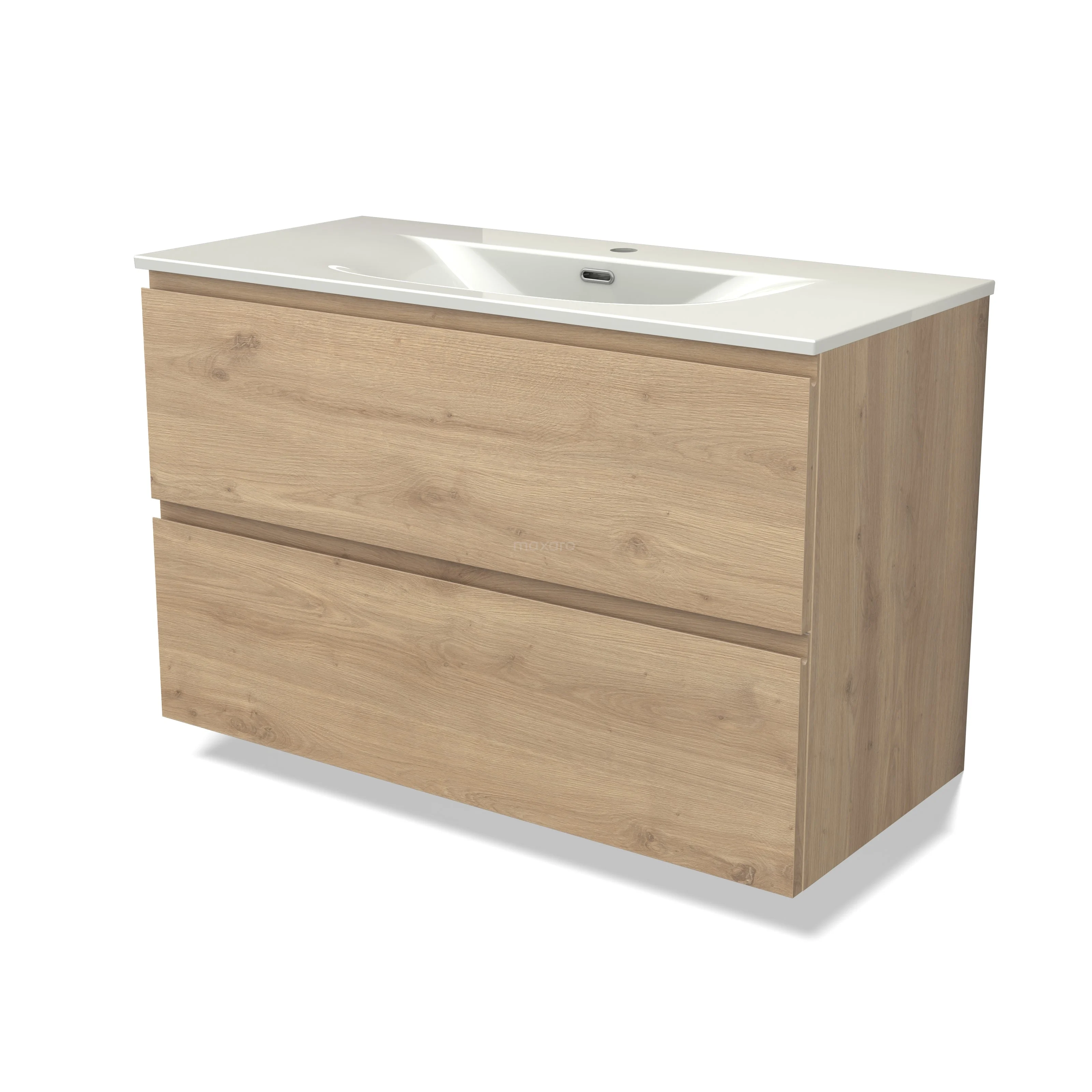 Modulo Bathroom furniture with sink | 100 cm Light brown oak Handle-less front Ceramic 2 Stacked drawers