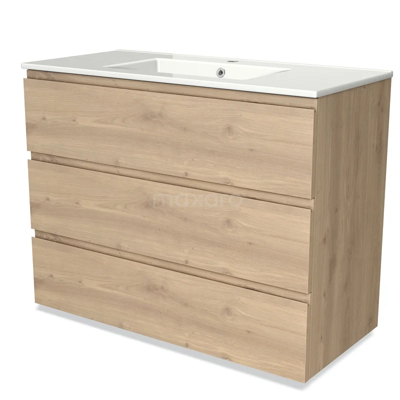 Modulo Bathroom furniture with sink | 100 cm Light brown oak Handle-less front Ceramic 3 drawers