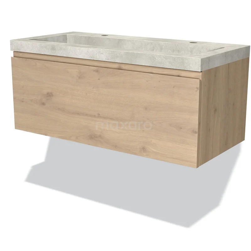 Modulo Bathroom furniture with sink | 100 cm Light brown oak Handle-less front Concrete 1 drawer