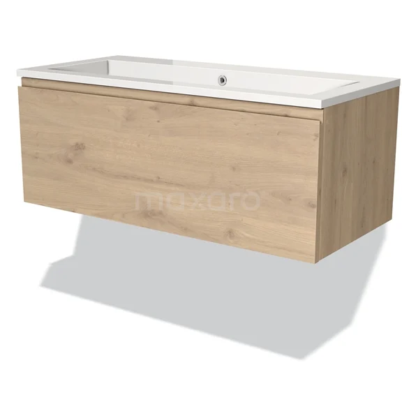 Modulo Bathroom furniture with sink | 100 cm Light brown oak Handle-less front Mineral marble 1 drawer