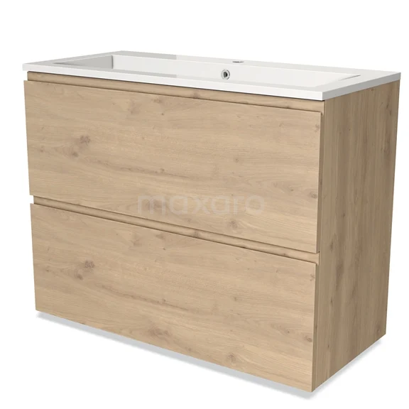 Modulo Bathroom furniture with sink | 100 cm Light brown oak Handle-less front Mineral marble 2 stacked drawers under each other