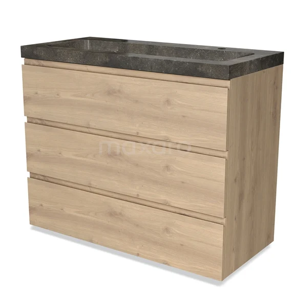 Modulo Bathroom furniture with sink | 100 cm Light brown oak Handle-less front Natural stone 3 drawers