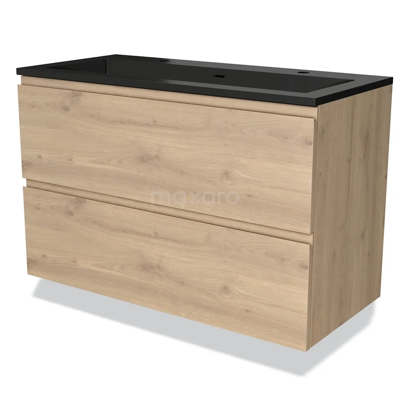 Modulo Bathroom furniture with sink | 100 cm Light brown oak Handle-less front Quartz 2 Stacked drawers
