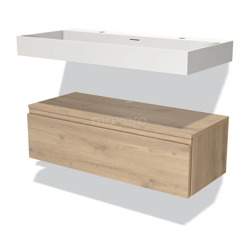 Modulo Bathroom furniture with sink | 100 cm Light brown oak Handle-less front Solid surface Low floating