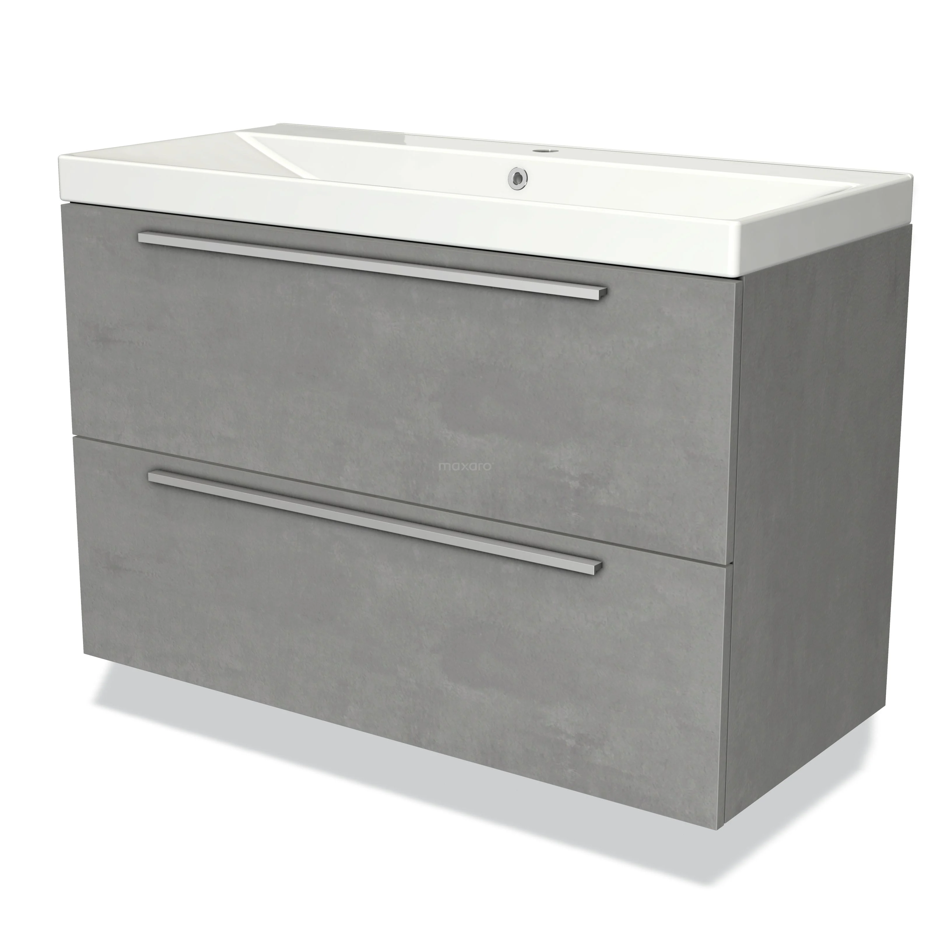 Modulo Bathroom furniture with sink | 100 cm Light grey concrete Flat front Ceramic 2 Stacked drawers