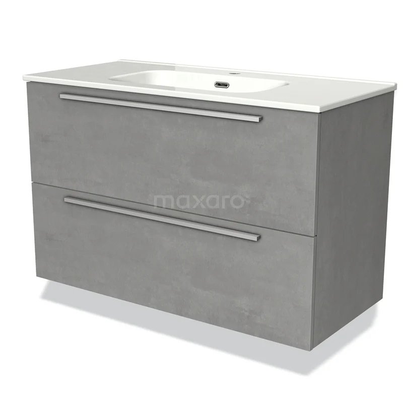 Modulo Bathroom furniture with sink | 100 cm Light grey concrete Flat front Ceramic 2 Stacked drawers