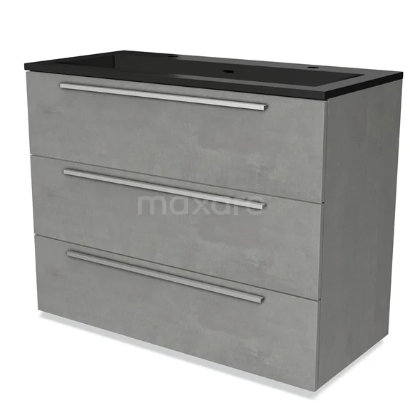 Modulo Bathroom furniture with sink | 100 cm Light grey concrete Flat front Quartz 3 drawers