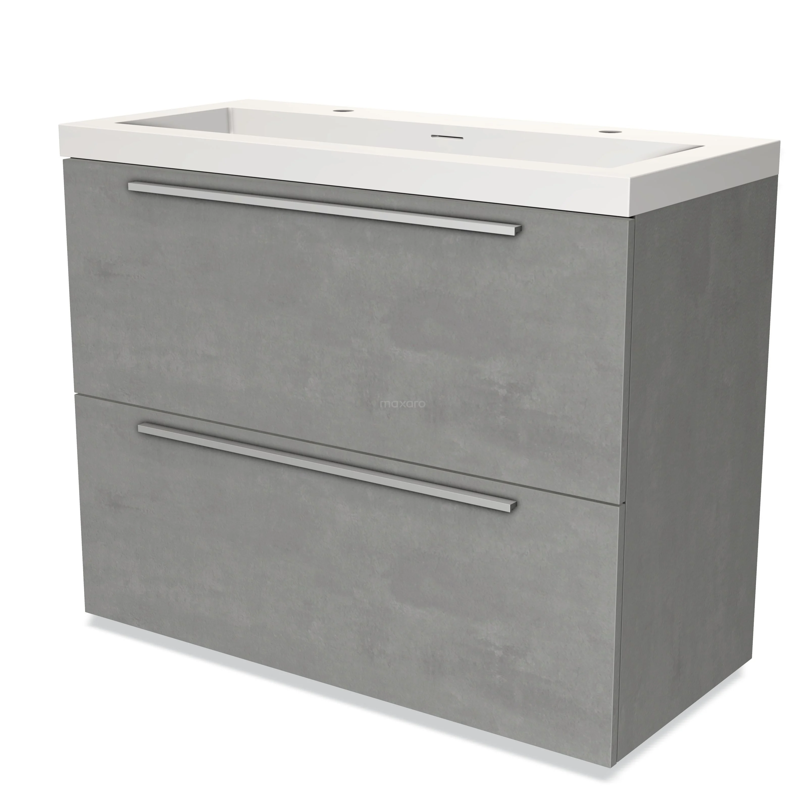 Modulo Bathroom furniture with sink | 100 cm Light grey concrete Flat front Solid surface 2 stacked drawers under each other