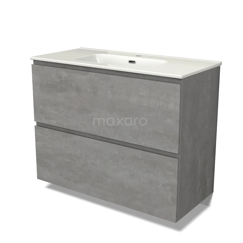 Modulo Bathroom furniture with sink | 100 cm Light grey concrete Handle-less front Ceramic 2 stacked drawers under each other