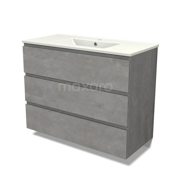 Modulo Bathroom furniture with sink | 100 cm Light grey concrete Handle-less front Ceramic 3 drawers