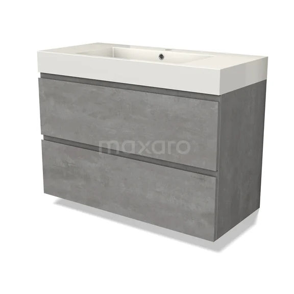Modulo Bathroom furniture with sink | 100 cm Light grey concrete Handle-less front Mineral marble 2 Stacked drawers