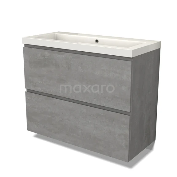 Modulo Bathroom furniture with sink | 100 cm Light grey concrete Handle-less front Mineral marble 2 stacked drawers under each other