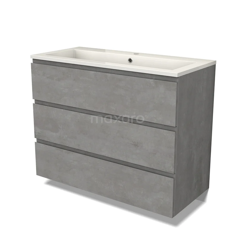 Modulo Bathroom furniture with sink | 100 cm Light grey concrete Handle-less front Mineral marble 3 drawers