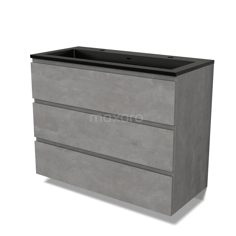 Modulo Bathroom furniture with sink | 100 cm Light grey concrete Handle-less front Quartz 3 drawers