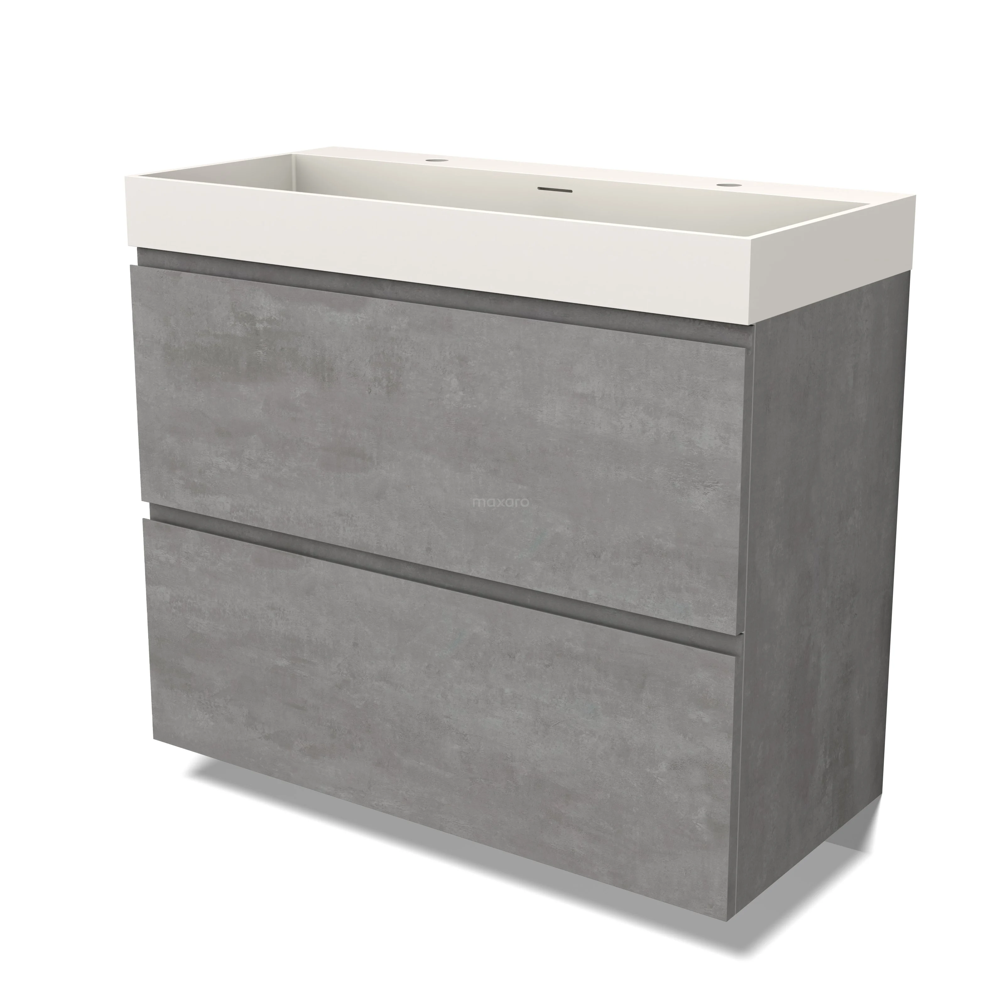 Modulo Bathroom furniture with sink | 100 cm Light grey concrete Handle-less front Solid surface 2 stacked drawers under each other