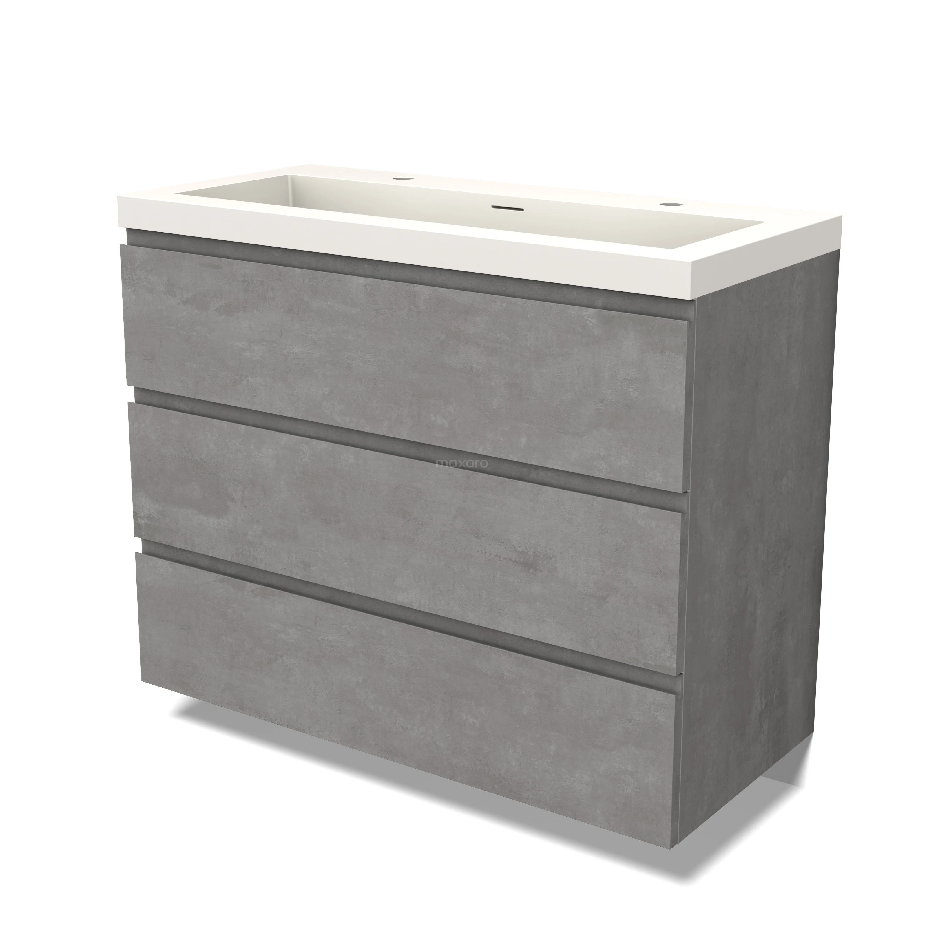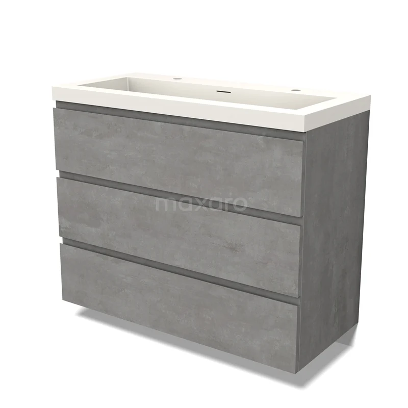 Modulo Bathroom furniture with sink | 100 cm Light grey concrete Handle-less front Solid surface 3 drawers
