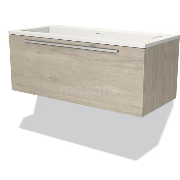 Modulo Bathroom furniture with sink | 100 cm Light grey oak Flat front Solid surface 1 drawer