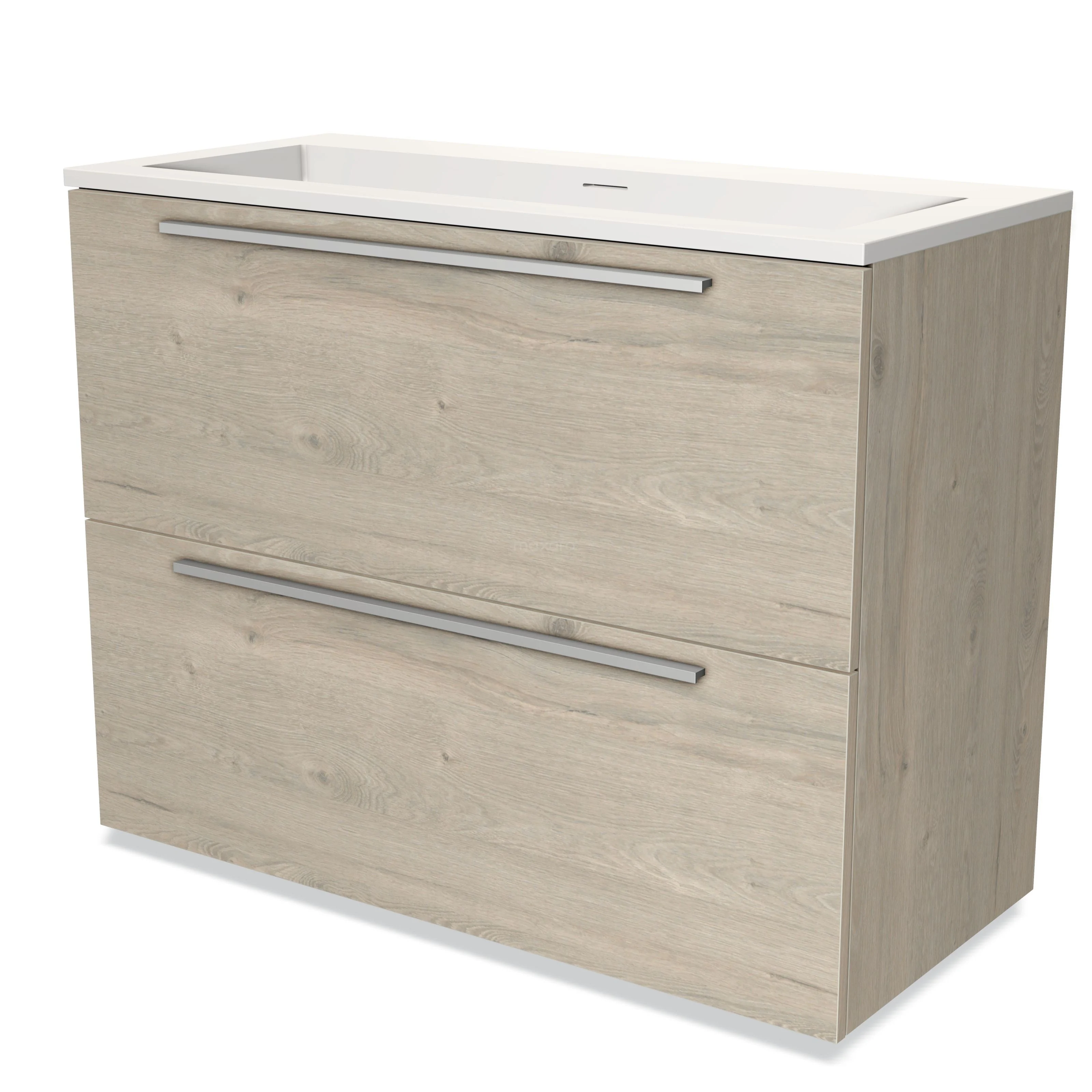 Modulo Bathroom furniture with sink | 100 cm Light grey oak Flat front Solid surface 2 stacked drawers under each other