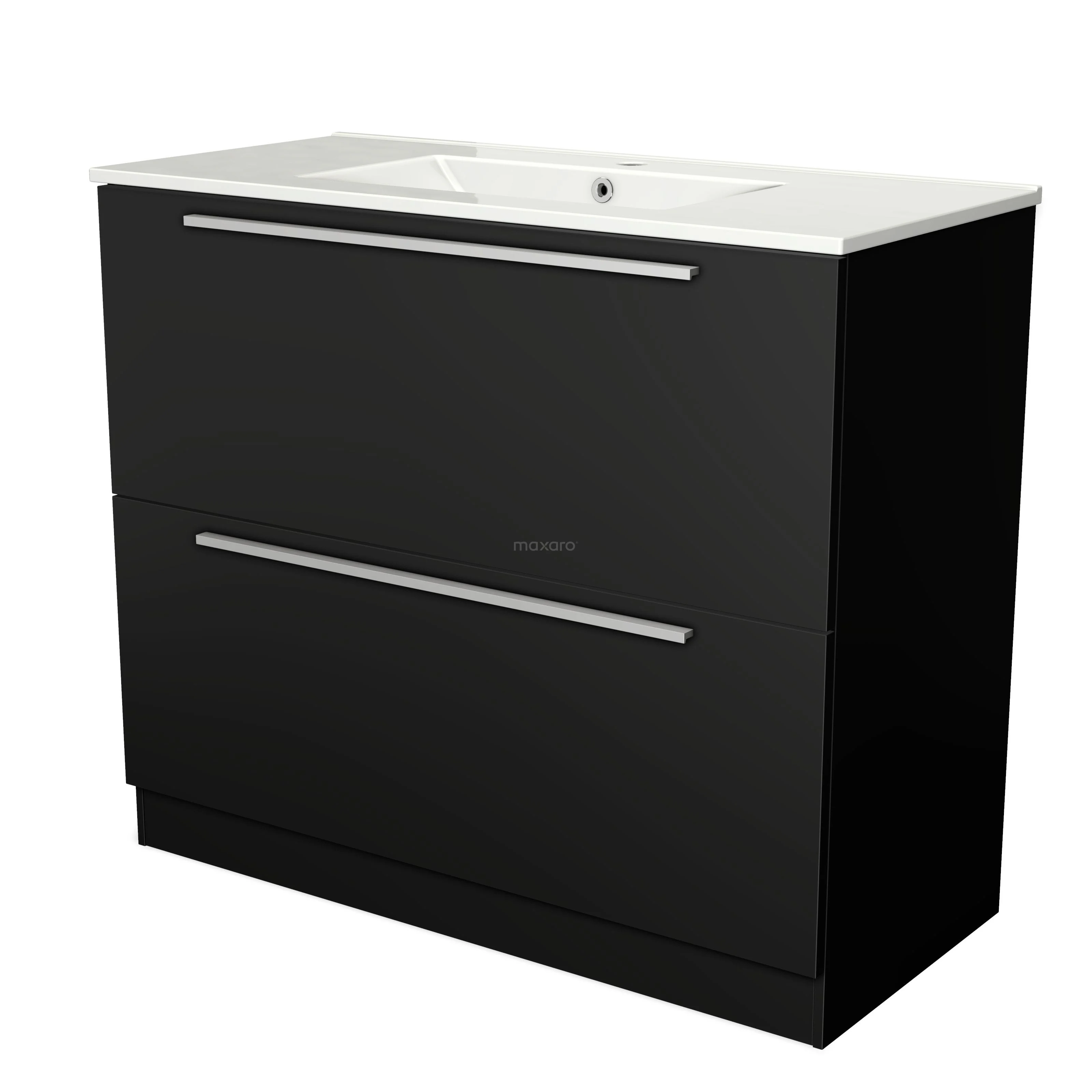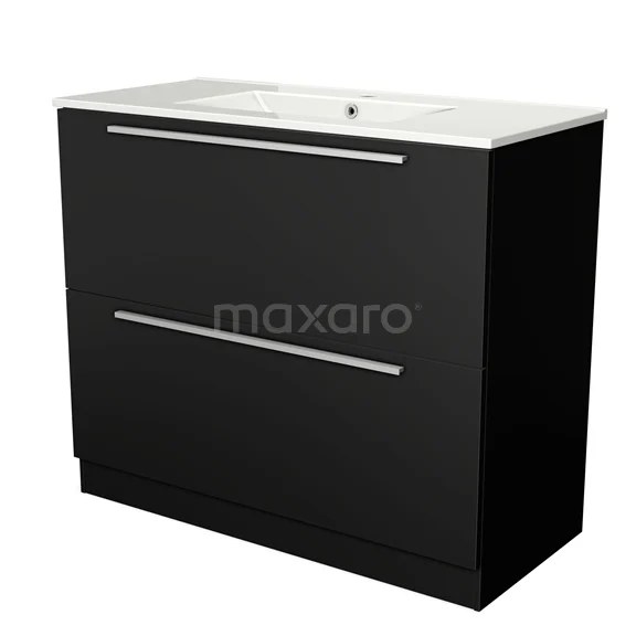 Modulo Bathroom furniture with sink | 100 cm Matte black Flat front Ceramic 2 high drawers standing drawers under each other